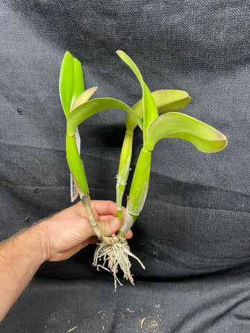 Potting is necessary when the rhizome of the plants protrudes over the edge of the pot or the potting medium starts to break down and drain poorly (usually after two to three years). It is best to repot just before new roots sprout from the rhizome, after flowering or in the spring. Mature cattleyas are usually potted in coarser potting material than are seedlings. Until a plant has at least six mature pseudobulbs, it generally should be put into a larger pot and not divided. If dividing a plant, three to five pseudobulbs per division are required. Select a pot that will allow for approximately two years of growth before crowding the pot. Pile mix against one side of the pot and cut off any dead roots. Spread the firm, live roots over the pile, with the cut rhizome against the side of the pot. Fill the pot with medium, working it around the roots. Pack firmly and stake if necessary. Keep the plant humid, shaded and dry at the roots until new root growth is seen.
