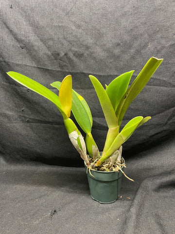Potting is necessary when the rhizome of the plants protrudes over the edge of the pot or the potting medium starts to break down and drain poorly (usually after two to three years). It is best to repot just before new roots sprout from the rhizome, after flowering or in the spring. Mature cattleyas are usually potted in coarser potting material than are seedlings. Until a plant has at least six mature pseudobulbs, it generally should be put into a larger pot and not divided. If dividing a plant, three to five pseudobulbs per division are required. Select a pot that will allow for approximately two years of growth before crowding the pot. Pile mix against one side of the pot and cut off any dead roots. Spread the firm, live roots over the pile, with the cut rhizome against the side of the pot. Fill the pot with medium, working it around the roots. Pack firmly and stake if necessary. Keep the plant humid, shaded and dry at the roots until new root growth is seen.
