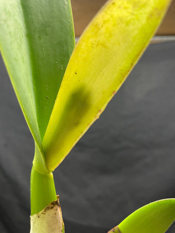 Light is the most important factor in growing and flowering cattleyas, whether in a greenhouse or in the home. Bright light to some sun should be given to the plants, with no direct sun in the middle of the day. This means an east, shaded south (as with a sheer curtain) or west window in the home, and 50 to 70 percent full sun in a greenhouse (3,000 to 5,000 foot-candles). Leaves should be a medium green color, pseudobulbs erect and requiring no staking.
